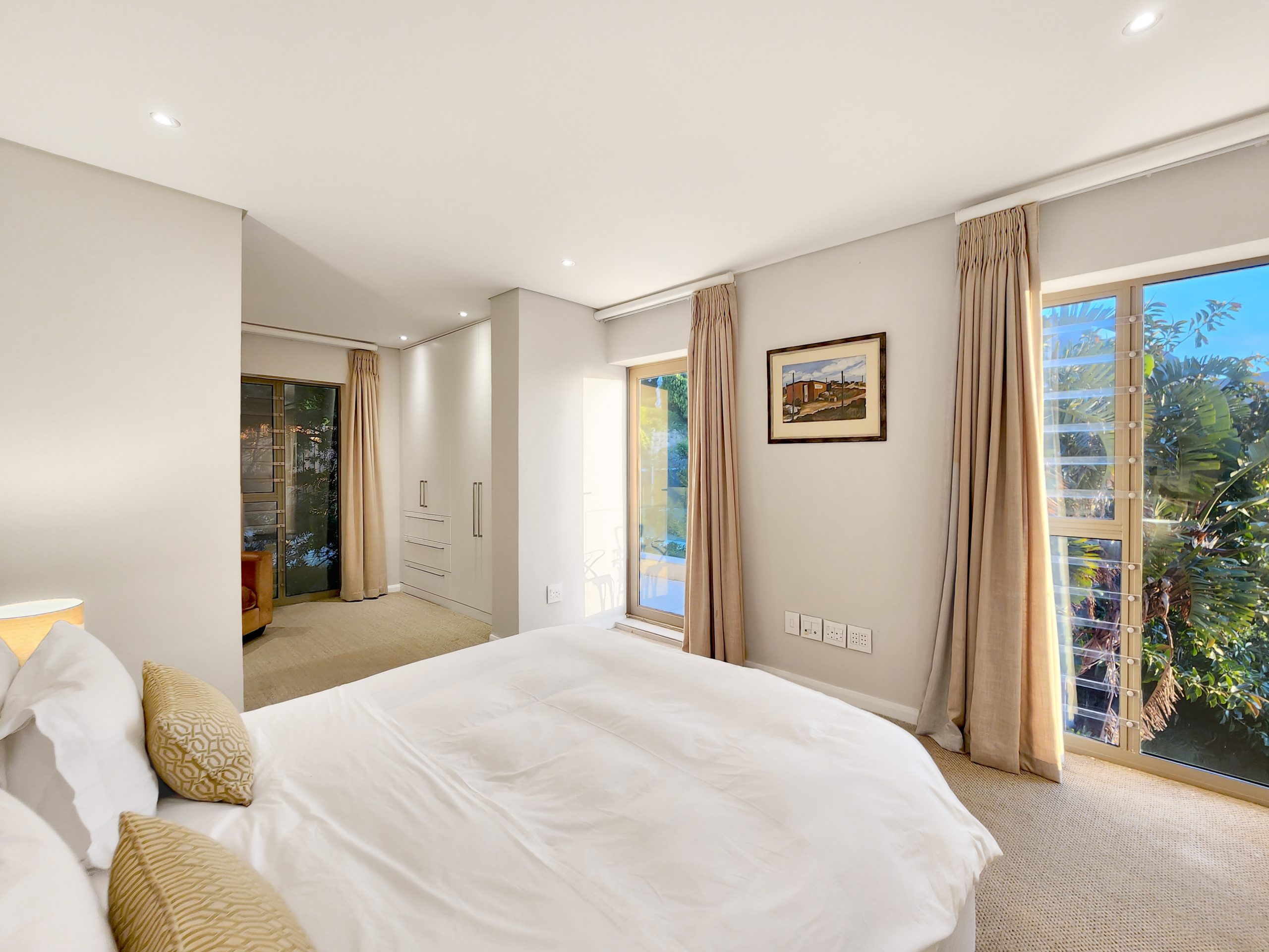 Secluded in a quiet cul-de-sac above Camps Bay, this luxury four-bedroom villa offers sweeping sea and mountain views. Enjoy indoor–outdoor living with two balconies, a sun-deck terrace and a pool facing Lion’s Head. Inside: multiple lounges, a bar, pool table, wine cellar and a private TV room for relaxed nights in. Minutes from the beach yet completely private, this is a calm, design-led escape for guests seeking quiet, views and proximity in one refined stay.